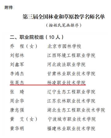 1月10日,国家林业和草原局公布了第三届全国林业和草原教学名师推荐结果,我校张英杰教授获全国林业和草原教学名师称号。