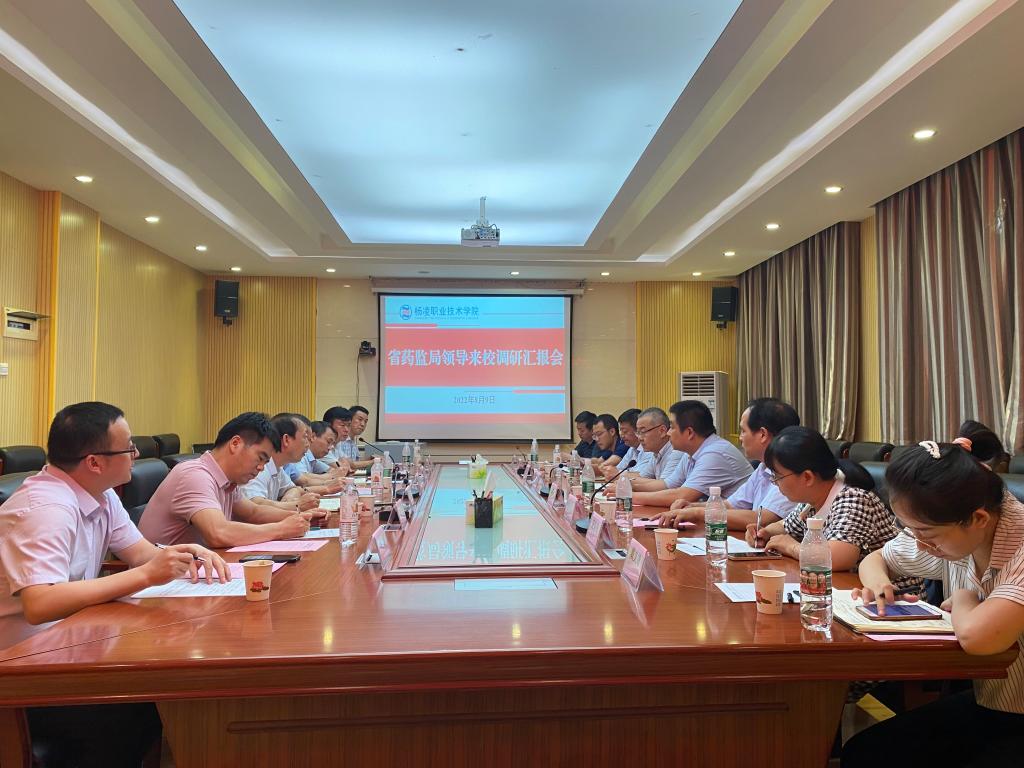 8月9日下午,陕西省药品监督管理局总工程师冯锋、药品生产监管处长侯鸿军一行5人,来我校就建立药品行业从业人员培训基地事宜开展专项考察调研。杨凌市场监管局书记刘春阳、副局长安兴国,学校副校长胡俊鹏,药物与化工学院党总支书记刘根牢、院长周博,继续教育学院负责人黄璞,科技与教育研究处基地办主任王稳江陪同调研。