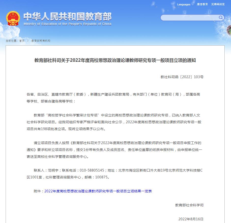 经教育部社科司组织专家严格评审和面向社会公示,2022年度高校思想政治理论课教师研究专项一般项目共有198项批准立项。其中,陕西省共有11个项目获批,崔巧玲主持的项目为全省高职高专两个立项之一。