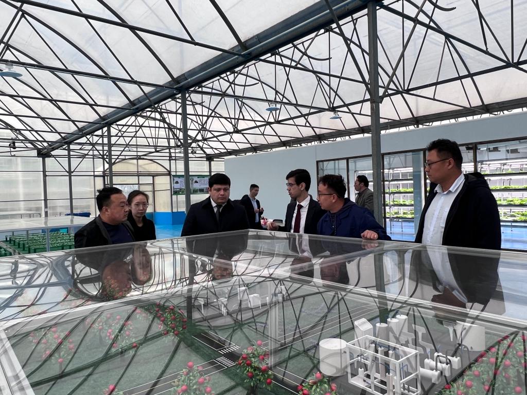 在农林综合实训基地,沙乌马洛夫一行参观了玻璃连栋温室和智慧农业实验温室,听取了我校现代农业专业课程教学实训设施建设、实训课程开设情况的介绍,并就草莓日光温室大棚、西瓜日光温室大棚、鲜食葡萄避雨栽培大棚等,在教学实践中发挥的作用、现代农业科技项目技术推广、涉农专业课程教学等情况与我校教师进行了交流。