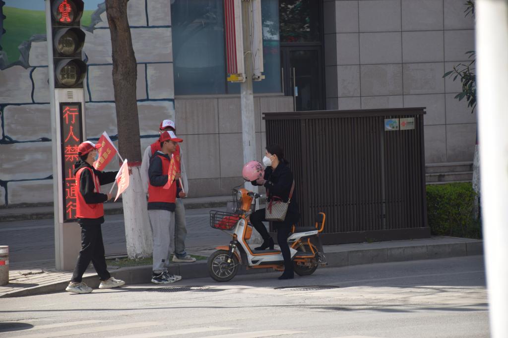 ——“出行有礼 爱心护学”中小学生上下学交通秩序维护。3月17日至21日,志愿者们定时、定点、定岗在杨陵高级中学、杨陵小学、高新小学、张家岗小学等学校外交通拥堵路段,开展上下学交通秩序维护活动。对过往车辆进行管控、疏导,对放学队伍进行护送,引导学生家长有序停放车辆、即停即走,确保学校附近道路安全畅通,增强了学生和家长们的交通意识和自我防护意识。