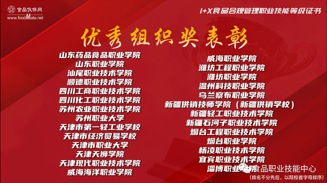 近期,食品合规管理职业技能等级专家委员会公布了2022年度1+X食品合规管理职业技能等级证书试点工作优秀院校及个人名单,我校荣获“领军院校奖”和“优秀组织奖”。