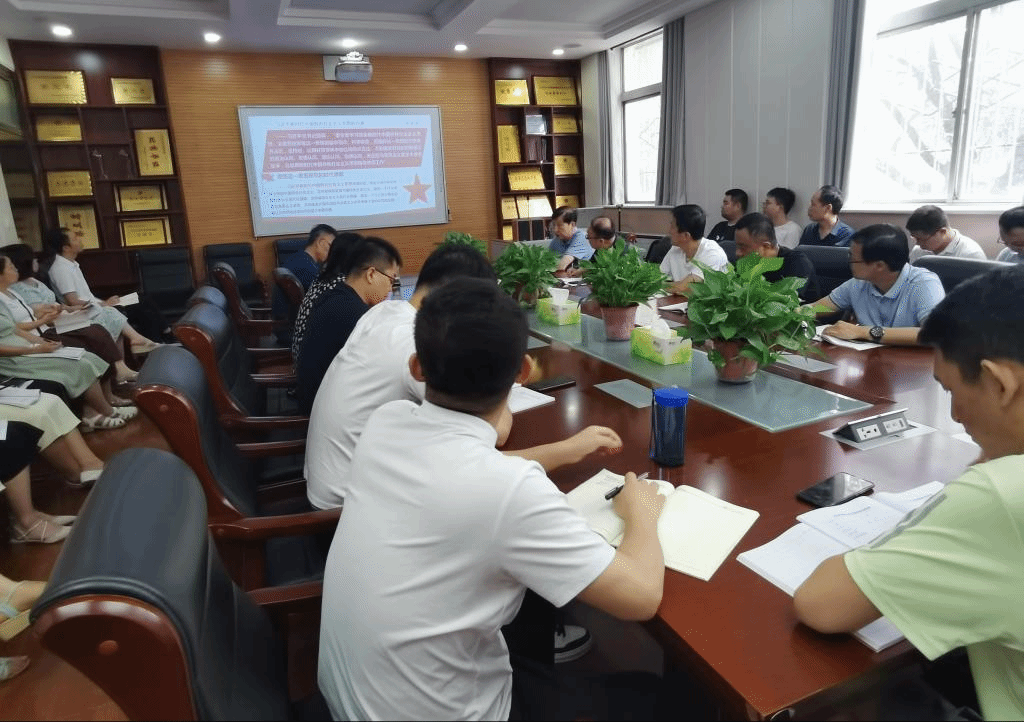 7月5日,副校长祝战斌以“深刻理解习近平新时代中国特色社会主义思想内涵 推进职业教育高质量发展”为题,为机电工程学院全体教职工讲授专题党课。