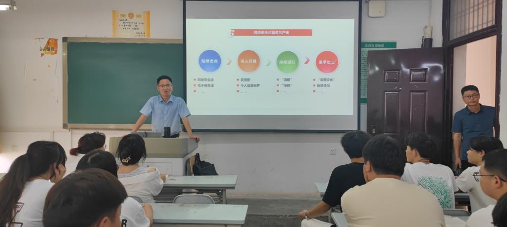——校领导集体听思政课。9月6日上午,党委书记王周锁,党委副书记、纪委书记王勇胜,副校长蒋平江、胡俊鹏深入教学一线,与电气22055班的学生共听马克思主义学院教师赵蓉上的“开学第一课”。赵蓉以“新时代、新征程、新使命”为主题,紧密结合时事和学生身边的实际案例,运用互动式、探究式教学方法,讲授了中国当前面临的机遇与挑战、取得的巨大成就,激励青年做勇于开拓创新的践行者。听课过程中,校领导们凝神专注,认真听课,详细做记录,仔细观察学生们的学习状态。课后,王周锁对课堂教学内容和水平予以肯定,并与学生进行亲切沟通。他指出,学生们身处新时代,要树立远大目标,笃行实干、锤炼本领,在推进中国式现代化的新征程上,勇担青春新使命,争做有理想、敢担当、能吃苦、肯奋斗的新时代好青年。
