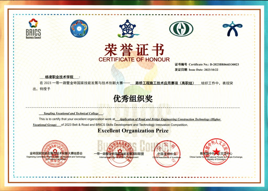 10月21日至22日,2023一带一路暨金砖国家技能发展与技术创新大赛-路桥工程施工技术应用技能竞赛决赛在西安举办,共有来自全国28个省份地区的179所院校323支队伍1500多名师生参赛。我校交通与测绘工程学院组成的两支代表队均获团体二等奖,学校获优秀组织奖,3名教师获得优秀指导教师。