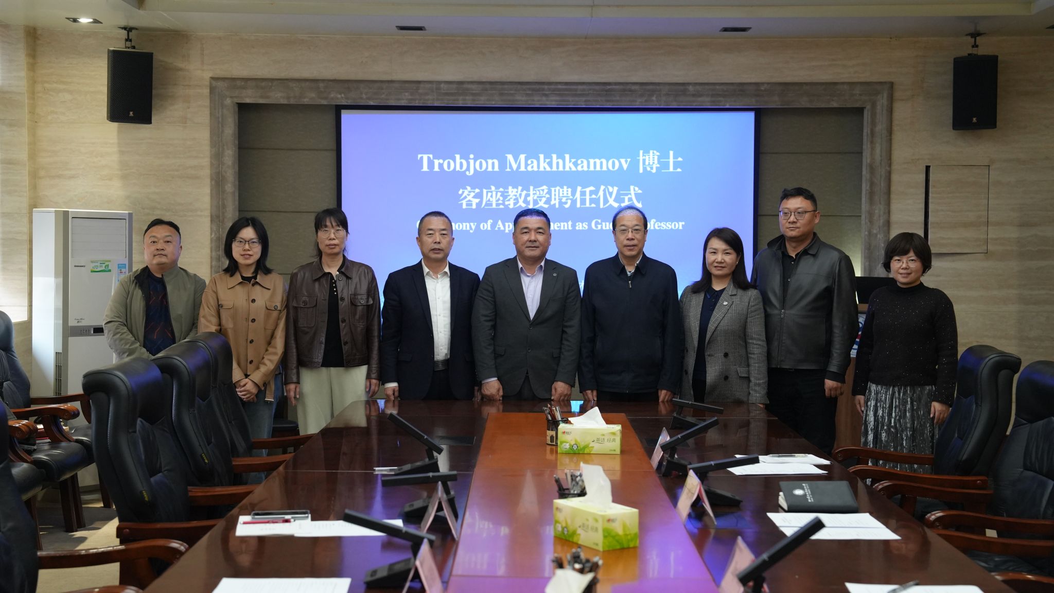 马卡莫夫教授对学校的热情欢迎和信任表示感谢。他表示,将积极参与学术活动,与学校教师深入交流合作,共同开展国际科研项目、发表高水平学术论文、编写教学资源等工作。同时吸收借鉴学校的办学经验与学术成果,将其带回塔什干国立农业大学,助力两校长期友好合作。