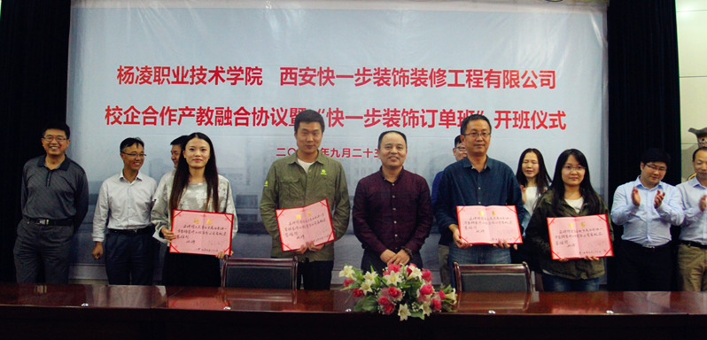 9月23日下午,生态环境工程分院与快一步公司校企合作产教融合协议签订暨“快一步装饰”订单班开班仪式在水韵楼二楼报告厅举行。我院副院长张迪、快一步公司总经理徐金诚、人事部经理石发发、行政部经理郝月及我院学保处、教务处负责人,生态分院领导班子、教师代表及订单班学生共60多人参加了开班仪式。开班仪式由生态分院党总支书记主持。