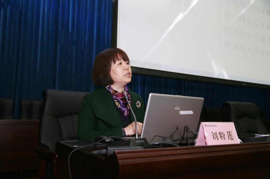 会上,刘粉莲作2015年招生就业工作报告。她全面介绍了2015年招生就业工作的基本情况、具体做法及存在的问题,并进一步明确了2016年招生就业工作进的思路。副院长张永良宣读了《杨凌职业技术学院关于表彰2014至2015年度招生宣传和就业(创业)工作先进集体和先进个人的通报》。