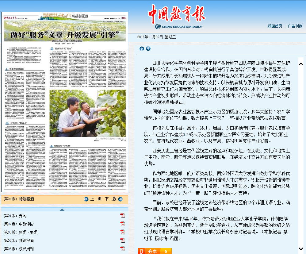 11月9日,《中国教育报》第四版以“做好“服务”文章 升级发展“引擎” ——透视陕西高等教育发展新路径”为题报道了我院相关工作(详情进入)。
