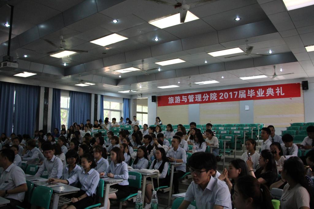 6月19日,旅游与管理分院在北校区致用楼台阶教室举行了2017届毕业典礼。副院长张永良,教务处、书画艺术中心、旅管分院相关负责人,以及分院全体教职及毕业班全体同学参加了此次毕业典礼。会上,与会领导为每个毕业生颁发了精美的毕业纪念册。