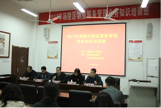 10月16日至27日,杨陵区人民政府主办,杨陵区住建局和我院旅游与管理分院承办的“2017年杨陵区物业服务管理业务知识培训班”圆满完成各项培训任务。我院副院长张永良,杨陵区政府副区长牛荣,以及示范区住房公积金管理中心、杨陵区住建局、杨陵区物业办有关负责人参加了16日晚举行的开班仪式。