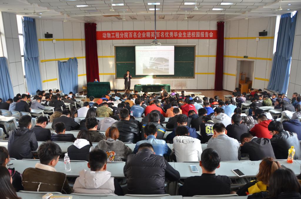 11月13日下午,动物工程分院邀请陕西沁稼生态科技有限公司总经理任兴武、北京伟嘉集团陕西公司总经理司东平来校作报告。这是该分院启动百名企业精英、百名优秀毕业生进校园的“双百入校促学”活动以来的第8场报告,旨在用榜样的奋斗历程激励学生树立目标、刻苦学习、勇于成才。