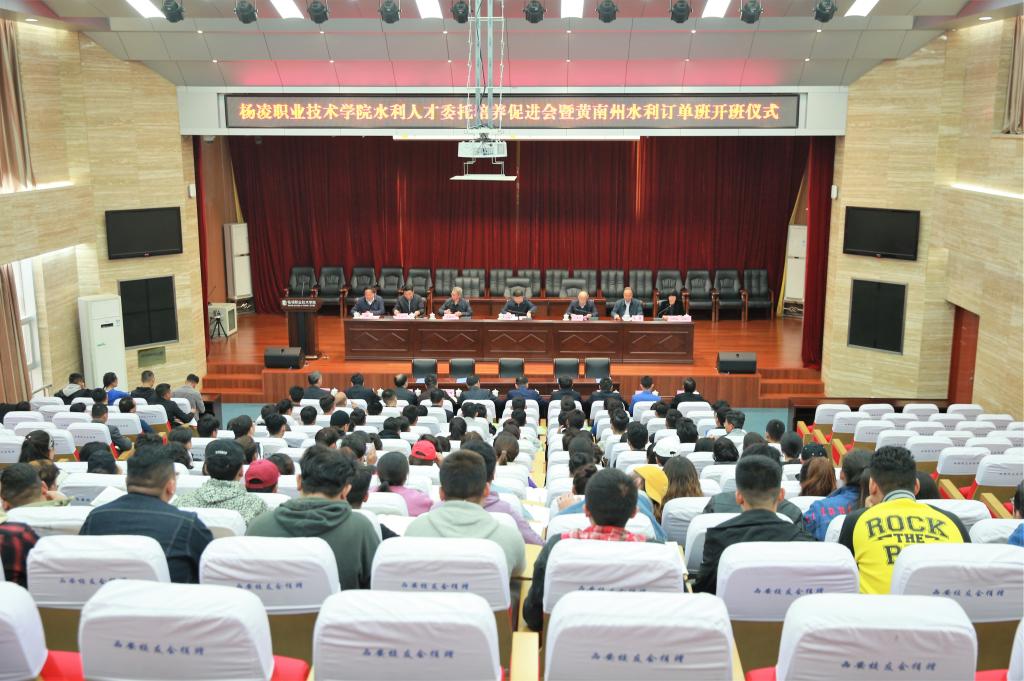 10月16日上午,杨凌职业技术学院水利人才委托培养促进会暨黄南州水利订单班开班仪式在南校区思辩堂举行。水利部人事司副司长王新跃,中国水利教育协会秘书长王韶华,青海省水利厅党组成员、副厅长王海平,黄南州人民政府副州长关却加;杨凌职业技术学院党委书记赵曼,院长王周锁,纪委书记刘粉莲,党委委员、教务处处长张宏辉;以及黄南州水利局、黄南州教育工委、学院招生就业处、水利工程分院主要负责人出席了开班仪式。开班仪式由学院纪委书记刘粉莲主持。