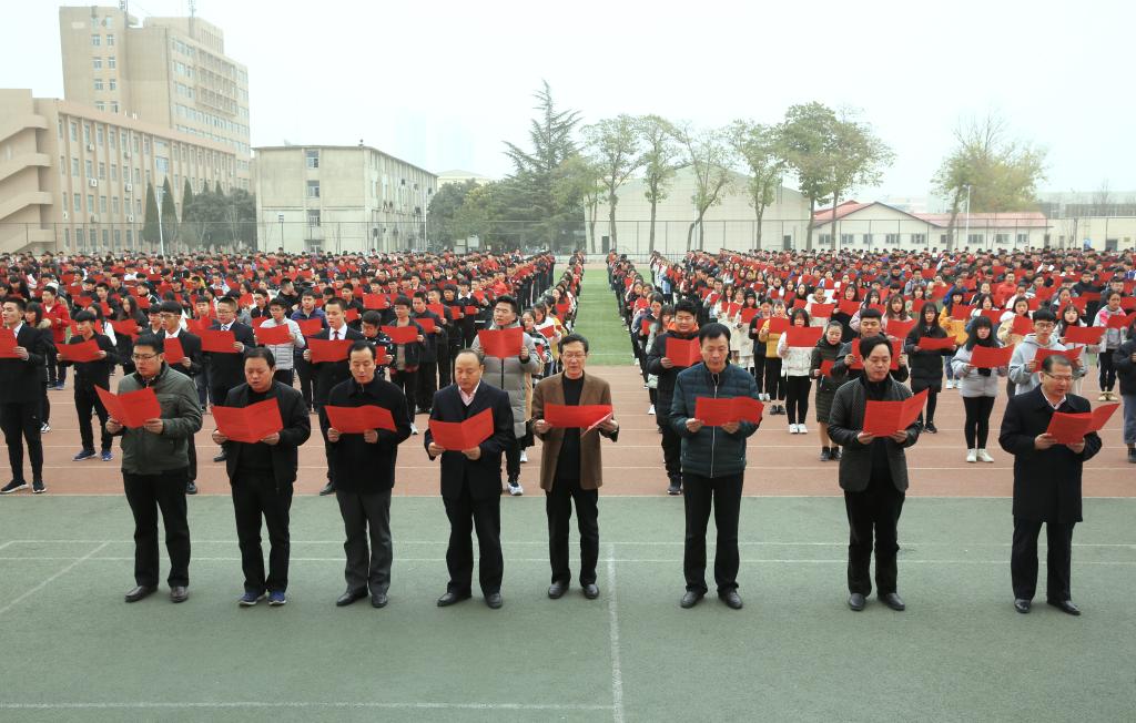 学院党委宣传部、学工部、保卫部、院团委、思政课教学部等部门负责人,各党总支书记、各分院学工办主任、思政课教学部全体教师,以及2018级学生代表共1000余人参加了活动。