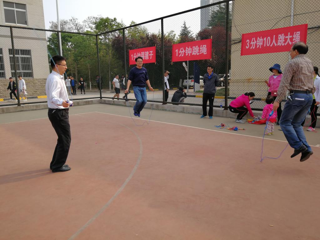 本次教职工趣味运动会共设5个项目,其中集体项目1个,为3分钟10人跳大绳;4个个人项目分别为1分钟踢毽子、1分钟跳绳、“筷”运乒乓球和乒乓球投篮。活动本着趣味性、参与性、娱乐性的目的,轻竞技,重参与,吸引了470余名教职工参加。