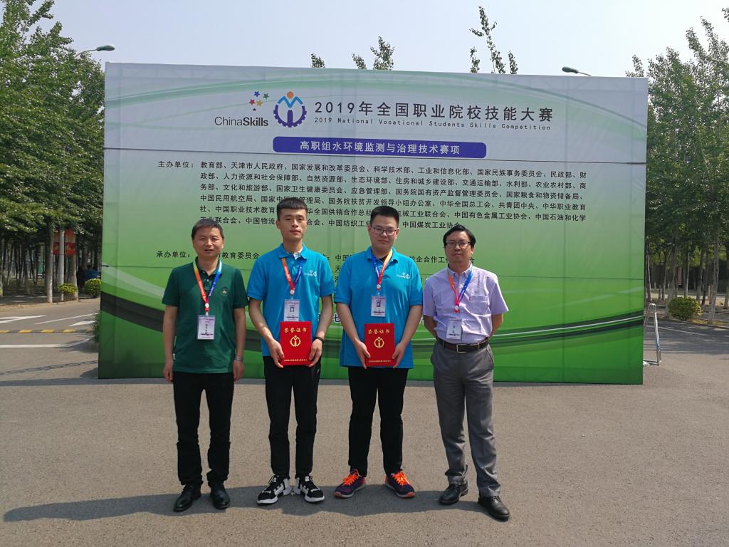5月8日至11日,2019年全国职业院校技能大赛高职组“水环境监测与治理技术”赛项在天津现代职业技术学院举行,我院生态环境工程分院水环境监测与治理专业16001班学生张宇龙、乔文江组成的代表队荣获三等奖。