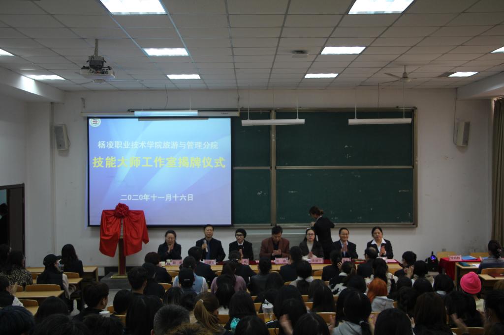 揭牌仪式结束后,两位技能大师为旅游管理、酒店管理专业学生分别作了题为《导游成长之路》和《全球现代餐饮业发展趋势》的专题报告。