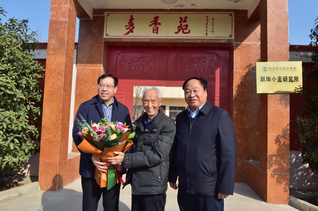 2月8日,杨凌示范区党工委书记黄思光一行赴豆村农场看望我校小麦育种专家赵瑜研究员,并对赵瑜老师表示亲切的慰问和新春的祝福。校长王周锁、副校长祝战斌及党政办公室主任张朝晖、科技与教育研究处处长冯旭等陪同前往。