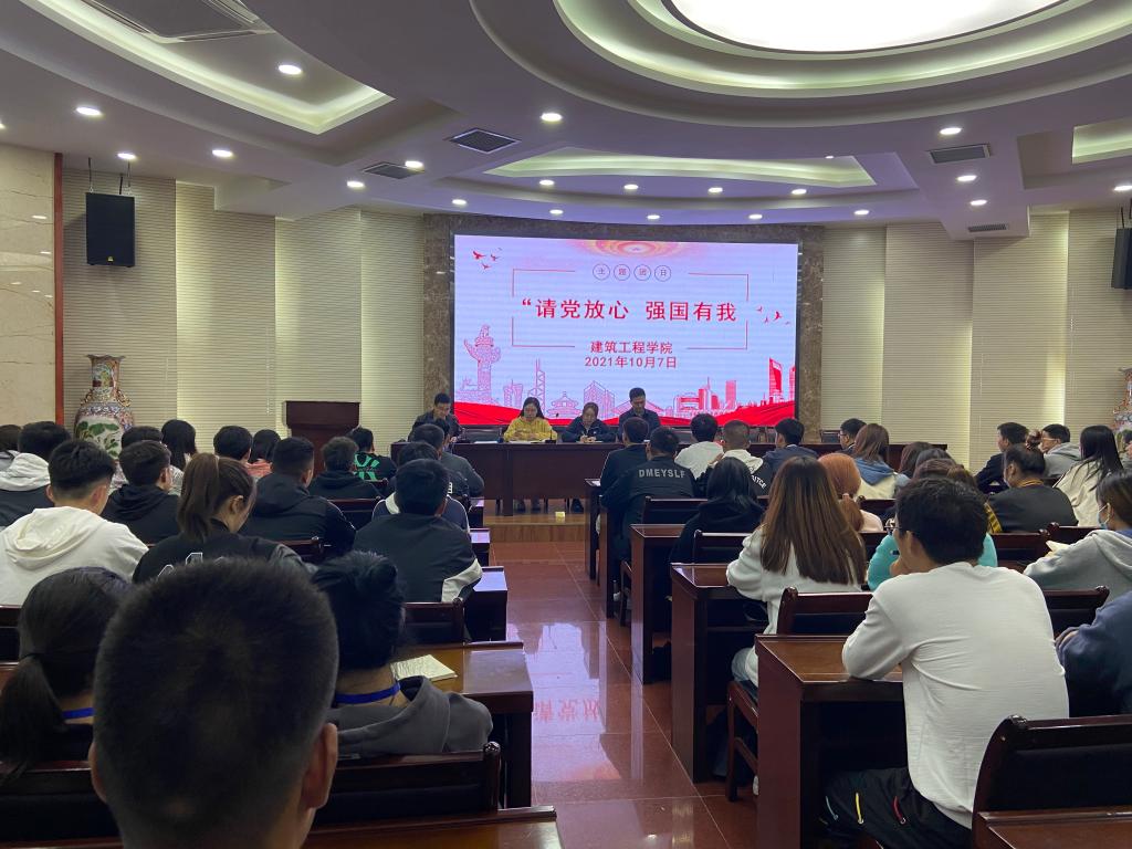 ——开展“请党放心 强国有我”主题团日活动。组织各班团支部在国庆节前后开展党史学习教育之“请党放心,强国有我”主题团日活动,以习近平总书记在榆林考察期间的重要讲话、建党百年庆典上青年代表集体朗诵视频、优秀党员代表的纪录片等为主要内容,采取学习研讨、分组汇报、主题演讲、诗歌朗诵、视频鉴赏、感悟分享、素质拓展等多种形式进行,使广大团员青年在重温历史的苦难与辉煌中,更加坚定为共产主义事业奋斗终身的信念,永远感党恩、听党话、跟党走。