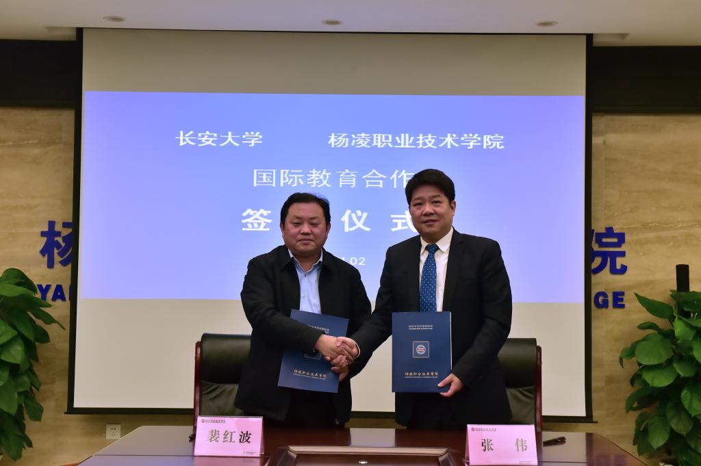 在副校长胡俊鹏的见证下,张伟与裴红波代表双方签订联合培养国际学生合作协议。根据协议,双方将在国际学生本专科联合培养和在杨凌职院设立“长安大学国际学生实习实训基地”等方面开展合作,联合培养国际学生采用“3+2”模式进行(即在杨凌职院就读前三年课程,在长安大学就读后两年课程),专业包括交通运输类、经济管理类、信息类和机械类等,双方根据教学计划进行课程和学分互认,国际学生在满足本科毕业要求后,可获得长安大学本科毕业证书。