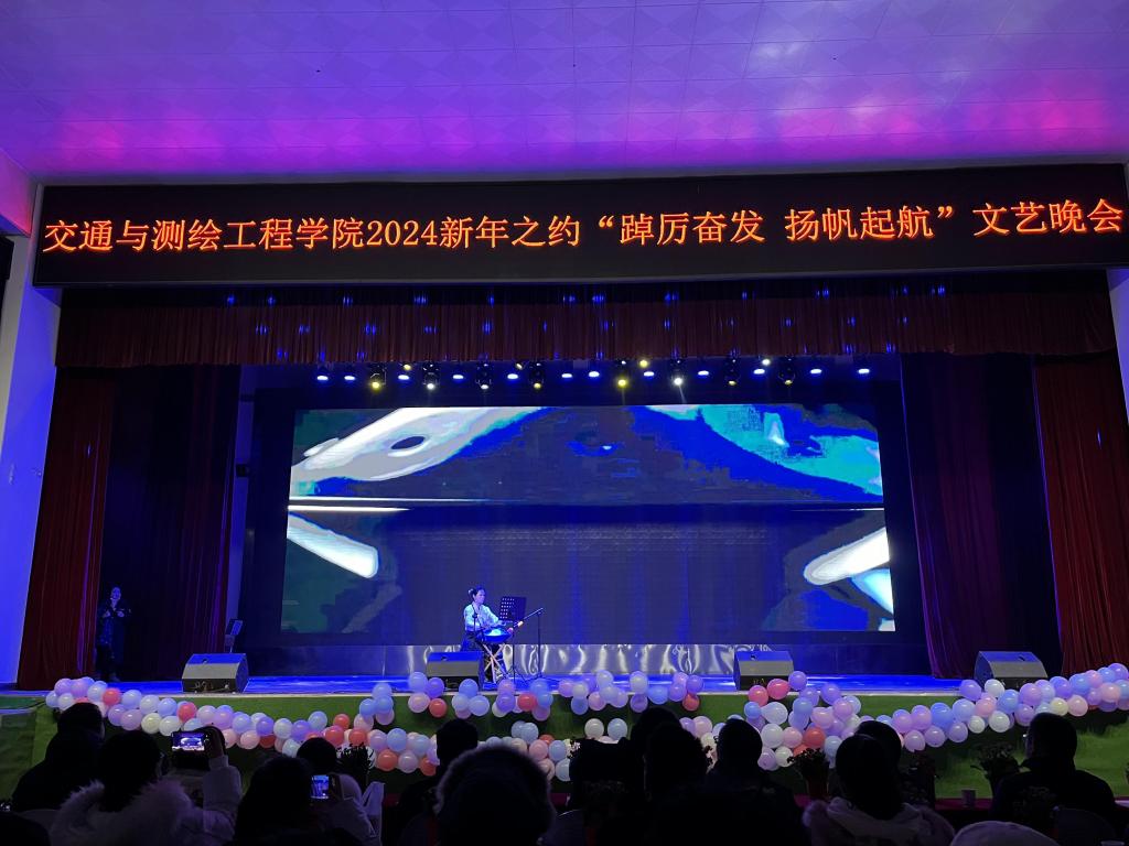 12月21日晚19:00,交通与测绘工程学院以“踔厉奋发,扬帆起航”为主题,在南校区一卡通中心举办2024新年之约文艺晚会。副校长张朝晖到场观看晚会。