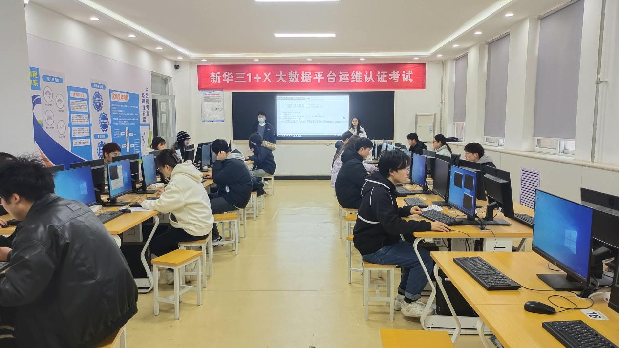 12月30日,“1+X”大数据平台运维职业技能等级认证考试(中级)在南校区信息工程学院软件技术实训区举行,信息工程学院大数据技术专业20名学生参加考试。