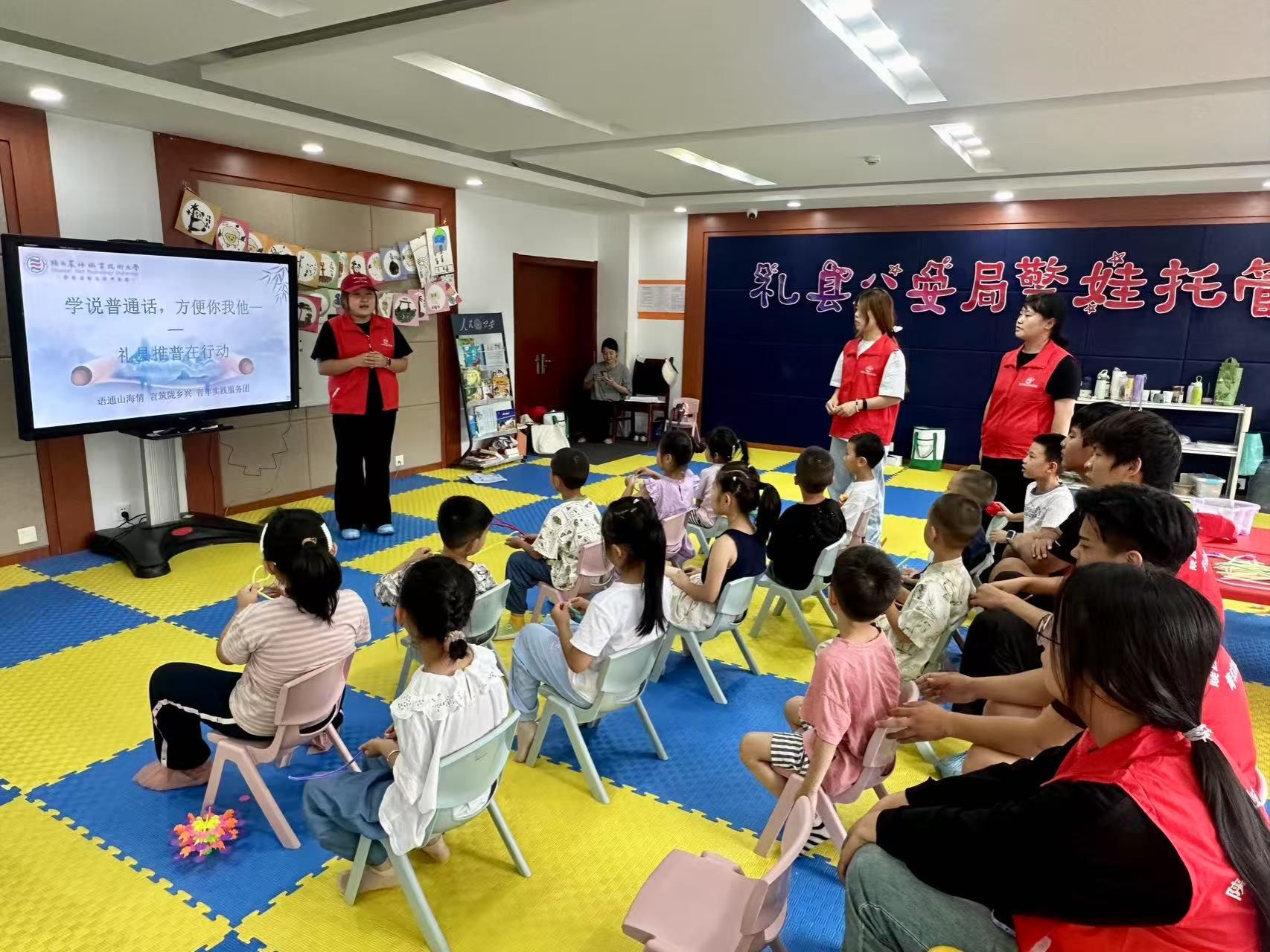 以语言帮扶落实乡镇民生实事。青年实践团联合礼县团县委开展“红领巾”爱心托管班志愿服务活动。志愿者们精心设计课程内容,从中国七大方言区分布谈起,结合孩子们熟悉的“礼县话”与普通话之间的语音、词汇差异,由浅入深地引导孩子们认识语言的魅力,激发孩子们“我是中国娃,爱说普通话”的语言意识。设计“手工+绘画”创意活动。孩子们使用五彩扭扭棒制作出棒棒糖、火柴人、小动物、小花朵等作品,围坐在一起,用画笔描绘心中“普通话”的模样,让“推普”的理念在心中生根发芽。