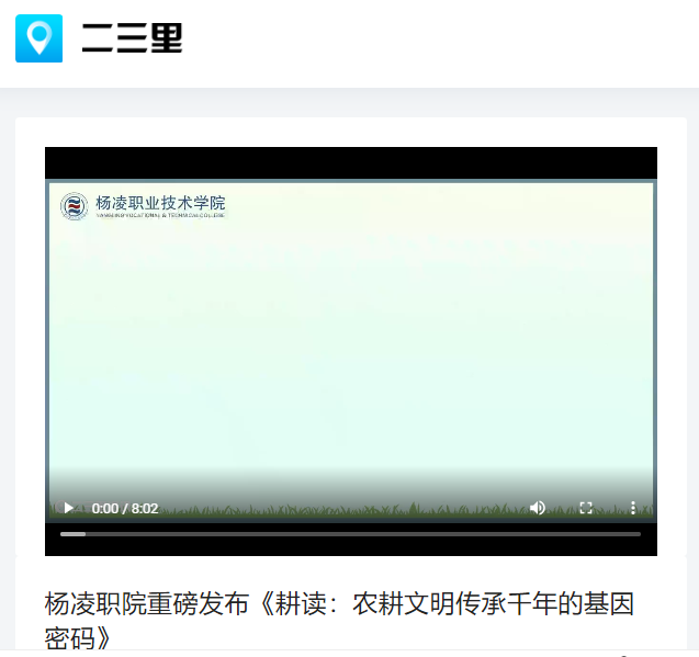 上一条:【陕西头条】杨凌职院发布动画宣传片《耕读:农耕文明传承千年的基因密码》