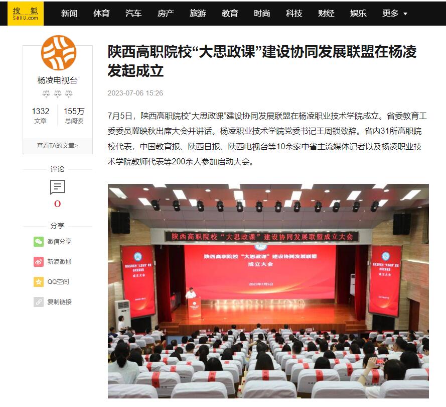 【搜狐网】陕西高职院校“大思政课”建设协同发展联盟在杨凌发起成立