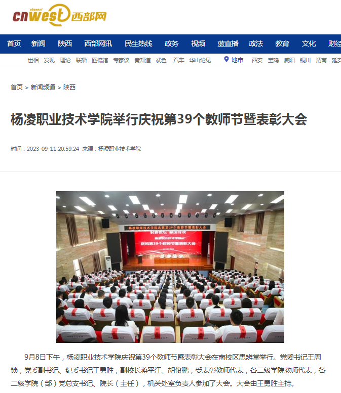 【西部网】杨凌职业技术学院举行庆祝第39个教师节暨表彰大会