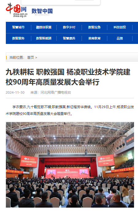 【中国网】九秩耕耘 职教强国 杨凌职业技术学院建校90周年高质量发展大会举行