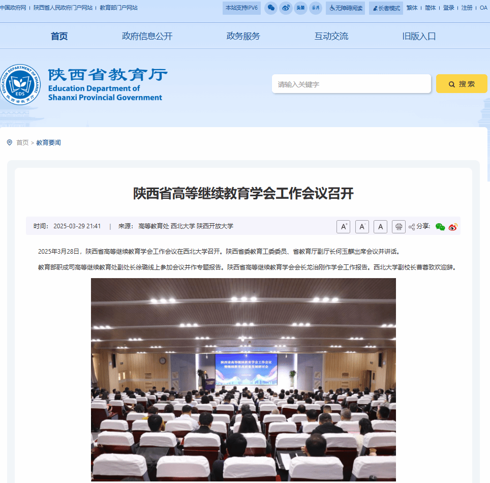 2025年3月28日,陕西省高等继续教育学会工作会议在西北大学召开。陕西省委教育工委委员、省教育厅副厅长何玉麒出席会议并讲话。