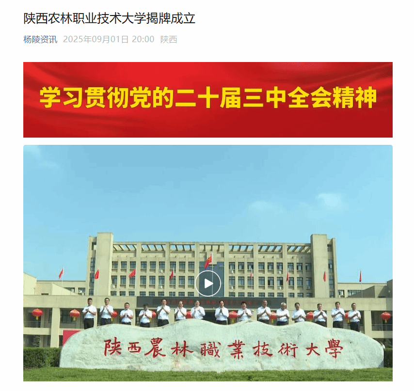 据了解,陕西农林职业技术大学肇始于1934年创办的国立西北农林专科学校附设高职,前身为1999年由原国家级重点中专陕西省农业学校、陕西省水利学校和省部级重点中专陕西省林业学校合并组建成立的杨凌职业技术学院,2025年6月,经教育部批准设立陕西农林职业技术大学,首批设立水利水电工程、建筑工程、现代通信工程、设施园艺、园林工程、动物医学6个本科专业。2025年,学校已成功招录首批本科生320人,生源质量和吸引力显著提升。