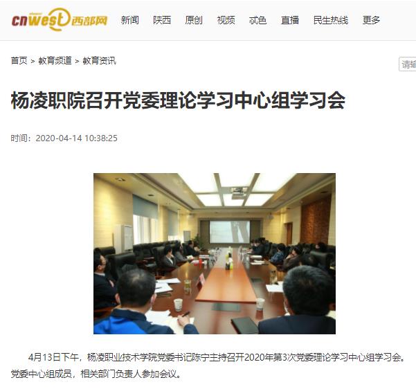 4月13日下午,杨凌职业技术学院党委书记陈宁主持召开2020年第3次党委理论学习中心组学习会。党委中心组成员,相关部门负责人参加会议。
