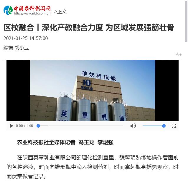 "自2020年10月份以来,我们公司共招聘杨凌职业技术学院毕业生12人,都在我们的检测中心工作,这里已经成为我们公司实现校企合作、人才交流的主要平台。我们公司不只是吸纳大专院校毕业生就业,也为尚未毕业的大学生提供实习机会,我们与杨凌职业技术学院签订协议,不定期提供工作岗位,为学校培养优秀毕业生贡献一份力量,也希望能有更多的优秀人才服务杨凌本地企业。"英童乳业(二期)负责人何云飞告诉记者。