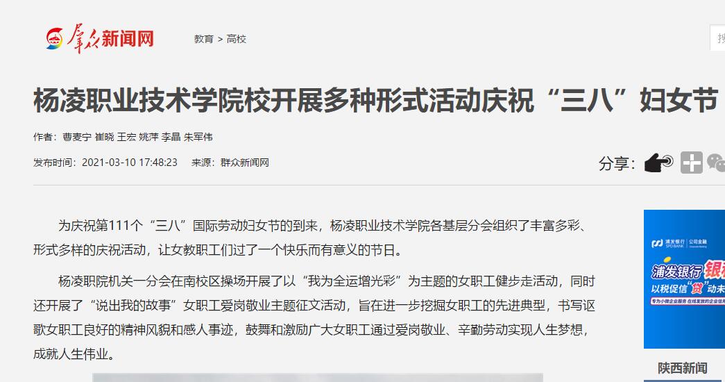 【群众新闻网】杨凌职业技术学院开展多种形式活动庆祝“三八”妇女节
