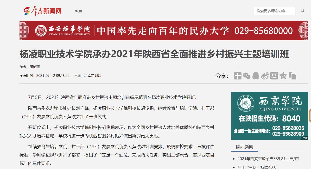 7月5日,2021年陕西省全面推进乡村振兴主题培训省级示范班在杨凌职业技术学院开班。