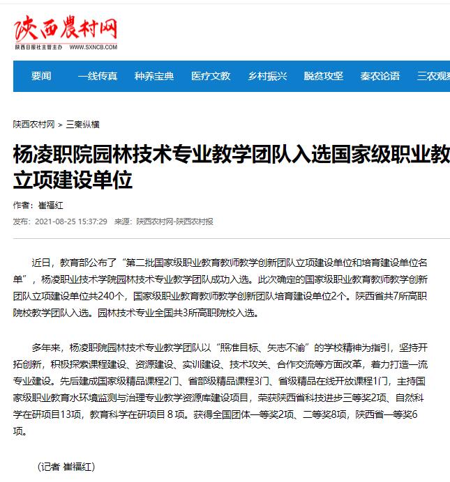 下一条:【各界新闻网】杨凌职院园林技术专业教学团队入选国家级职业教育教师教学创新团队立项建设单位