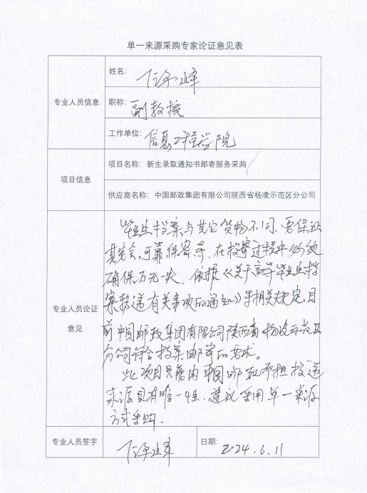 杨凌职业技术学院新生录取通知书邮寄服务项目,根据项目立项相关资料及专家论证意见,拟采用单一来源采购方式,该项目拟由中国邮政集团有限公司陕西省杨凌示范区分公司承担。现将有关情况向潜在的供应商广泛征求意见。