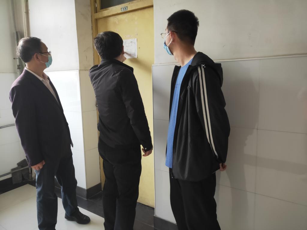 5月10日下午,信息工程分院党总支书记高掌平老师、学工办主任吴高潮老师以及学工办辅导员,进入学生宿舍看望返校同学。