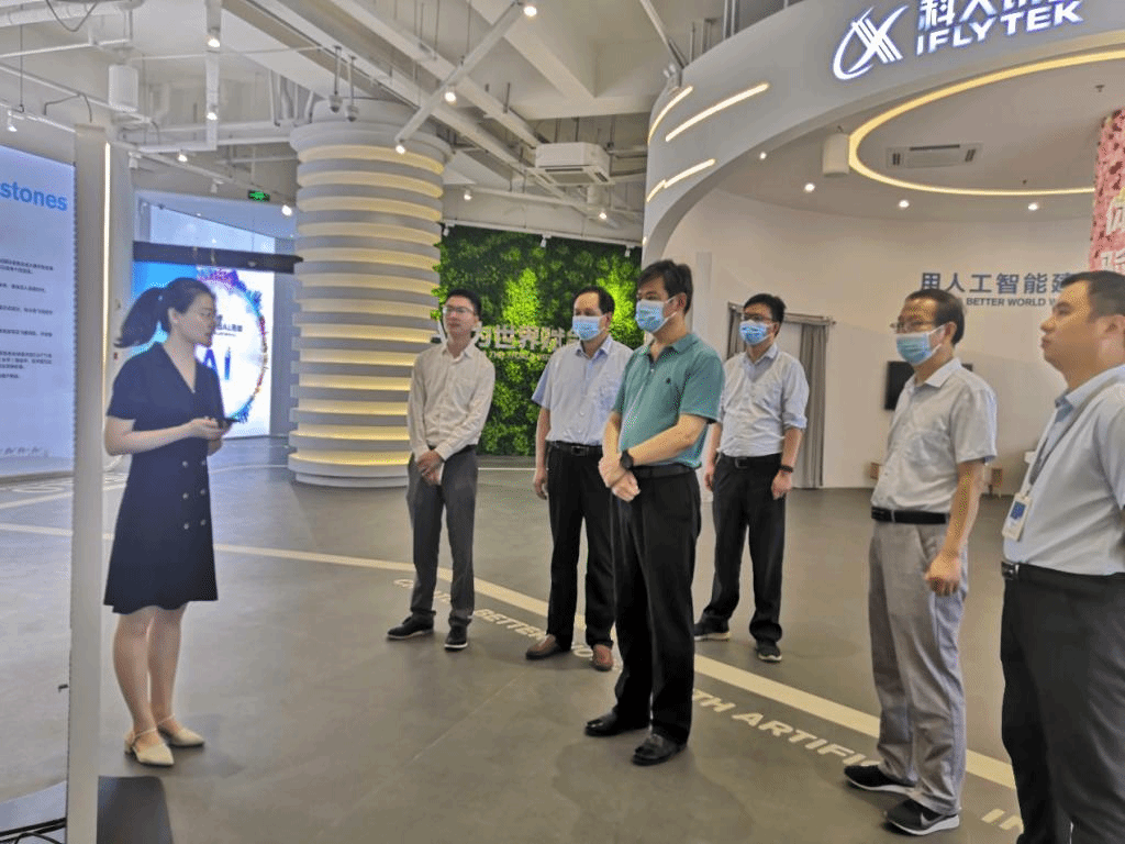 在科大讯飞公司,公司丝路总部销售总监王宝柱及相关项目负责人热情接待了张迪副院长一行,引导大家参观了科大讯飞人工智能展厅,详细了解了科大讯飞在教育、医疗、政法、智慧城市等领域的创新成果。
