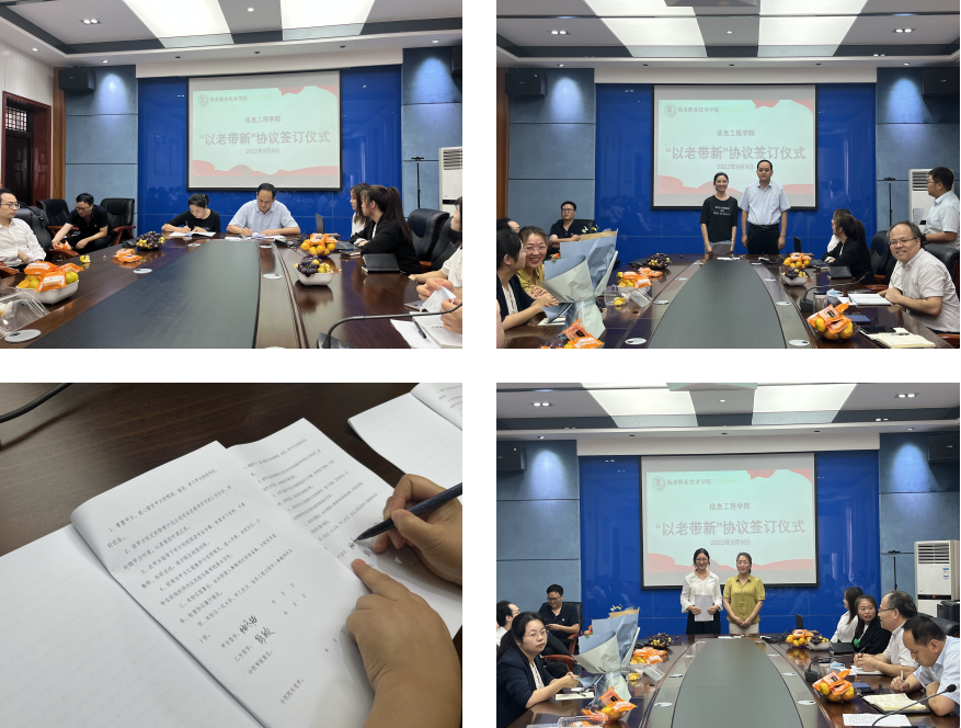 3名新进专职教师和2名辅导员也同“师傅”们郑重签订了以老带新协议。
