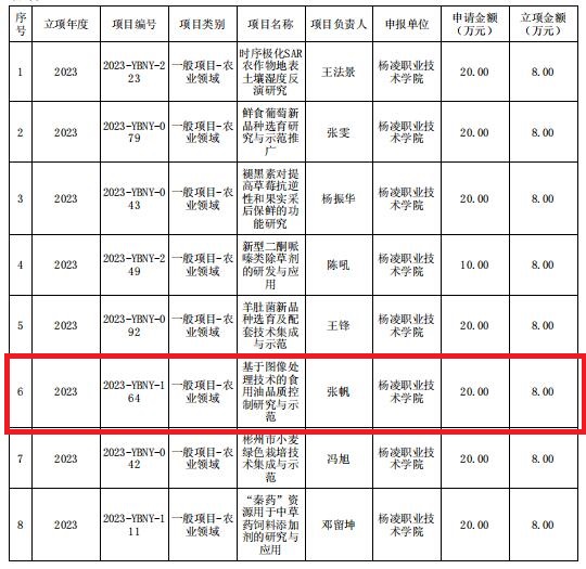 近日,省科学技术厅公布了2023年陕西省科技计划项目立项结果,由我院张帆老师申报的“基于图像处理技术的食用油品质控制研究与示范”项目通过层层筛选,成功立项。