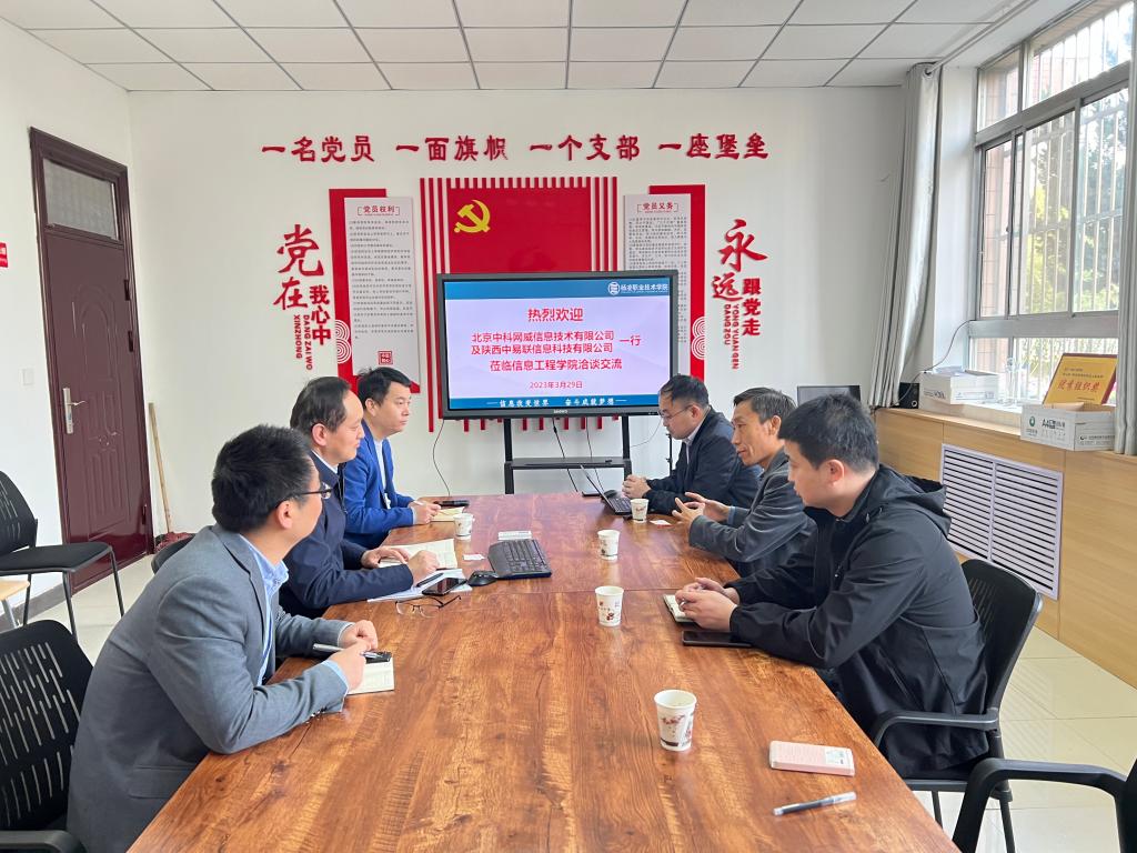 3月29日上午,北京中科网威技术总监李继磊博士、西北区域经理张海波、陕西中易联信息科技有限公司总经理孙树林等一行4人来我校洽谈交流。信息工程学院院长陈高锋、副院长熊刚及网络教研室冯春卫等出席洽谈会。校企双方围绕计算机应用技术专业人才培养开展交流研讨。