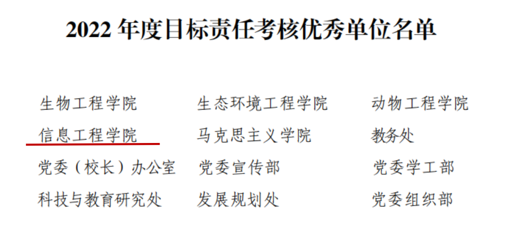 2023年4月,学校公布了2022年度考核优秀单位,信息工程学院被评定为优秀单位,这是暨2021年度以来,信息工程学院连续2年获此殊荣。