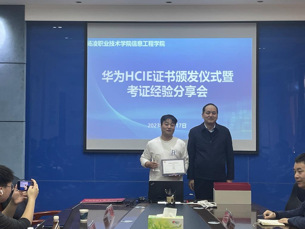 陈高锋首先向黎愿同学颁发了华为HCIE证书和奖杯,并向黎愿同学表示祝贺。陈高锋表示,黎愿同学能够成功取得华为HCIE证书,其背后隐藏着艰苦的付出和努力。陈高锋勉励在座的各位同学要向黎愿同学学习,在今后的学习生活中要不断拼搏,努力学习,在专业领域内取得更大的成就。