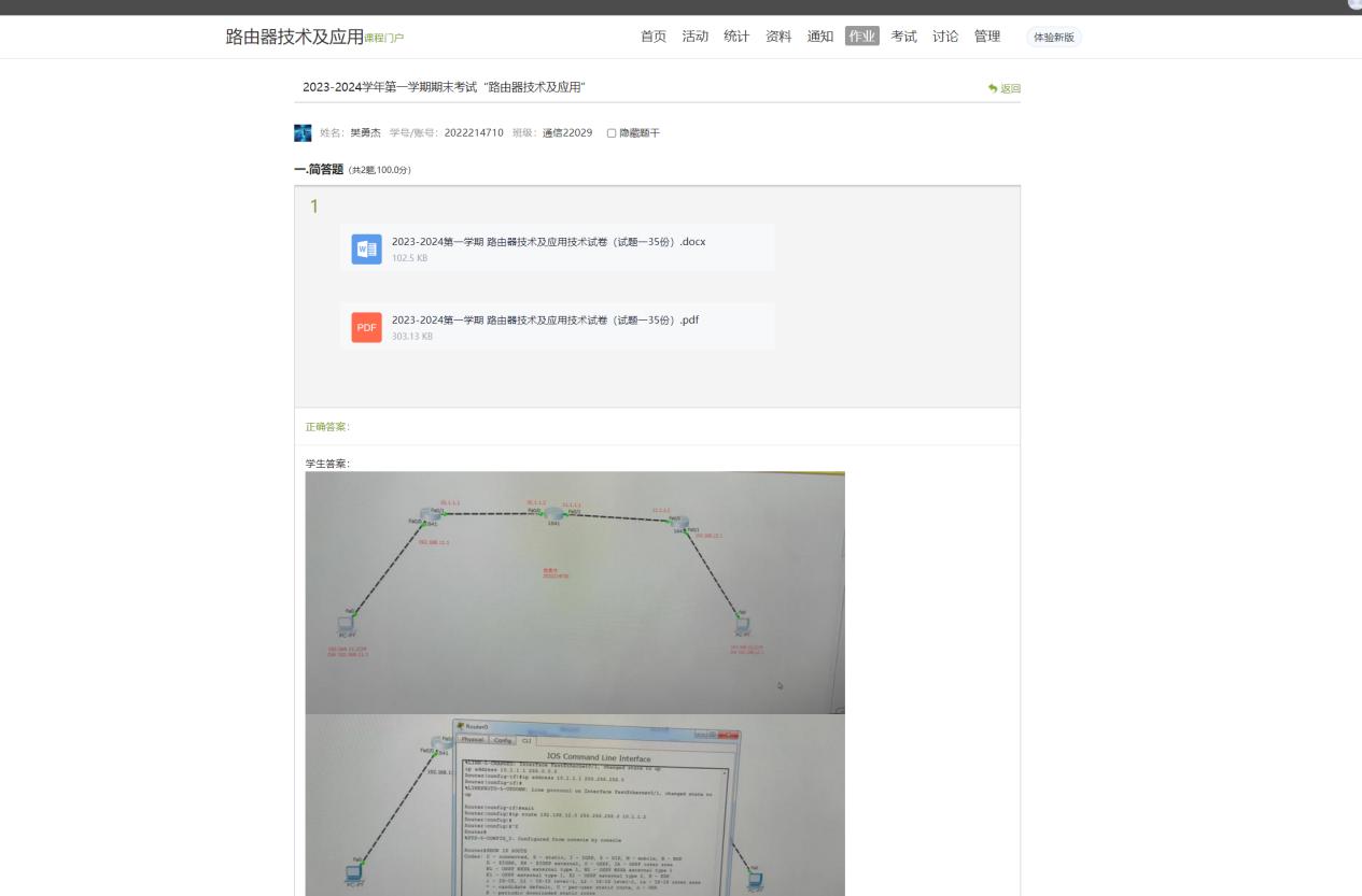 2024年1月11日上午8:30,我院现代通信技术专业2022级学生在安全与数通实训室(NOD-502)开展了《路由器技术及应用》课程改革考试,本次考试共设90分钟,其中包括仿真实验、真机实操和综合素养考核三部分内容。