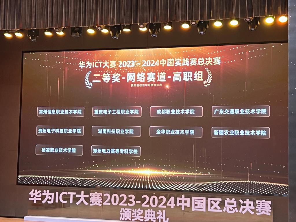 4月3日,华为ICT大赛2023-2024全国总决赛获奖名单公布,由我院冯春卫老师指导的学生团队荣获全国总决赛实践赛网络赛道二等奖。