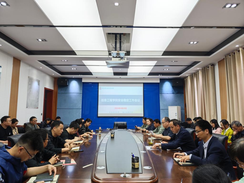 4月29日,信息工程学院在秦风楼四楼会议室召开安全稳定工作会议,学院院长陈高锋、学院党总支副书记吴高潮、副院长熊刚、学工办主任任争峰以及学院全体教职工参会,会议由吴高潮主持。