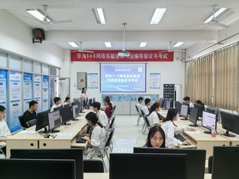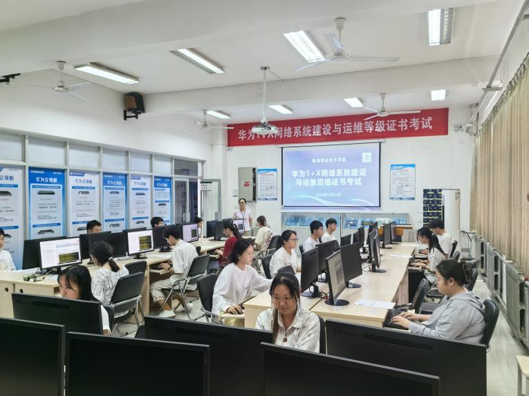 6月29日,华为“1+X”网络系统建设与运维职业技能等级(中级)认证考在南校区信息工程学院举行,信息工程学院17名同学参加了考试。